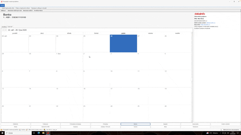 - V menu zvolte Banka / Práce s bankovním účtem / Nahrávání pohybů účtu